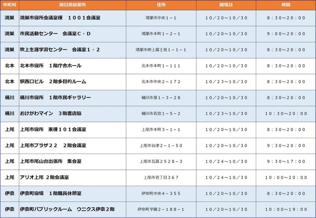 埼玉六区の期日前投票所をまとめたので、ぜひ参考にしてください。